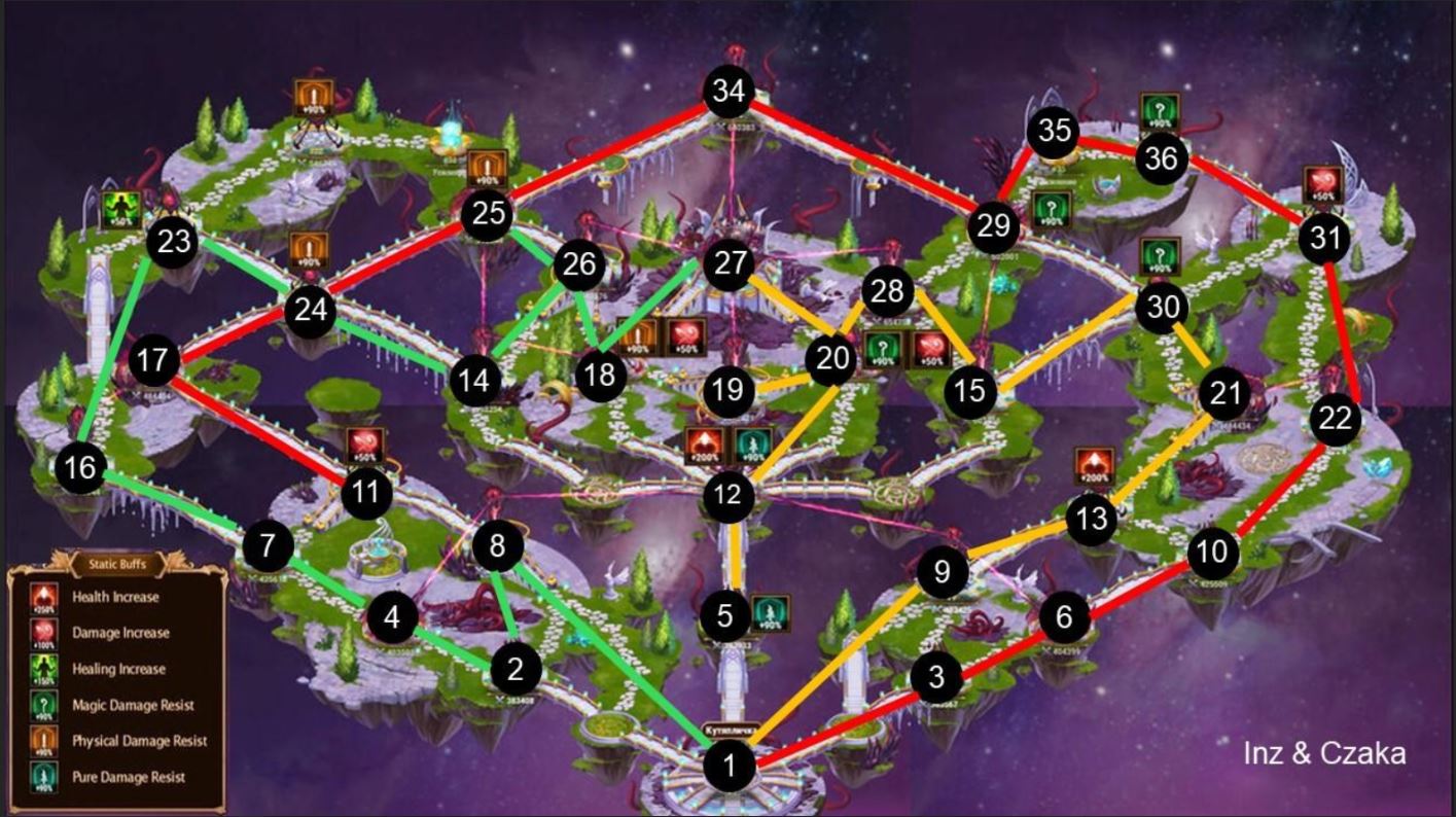Green (Magic Team): 8-2-4-7-16-23-24-14-26-25(Don't capture, let the red team complete the capture)-26(If you can't win #18 , reserve three step Include two step to boss fights, let the yellow team support) -18(If you can win, keep at least two boss fights)-boss x3